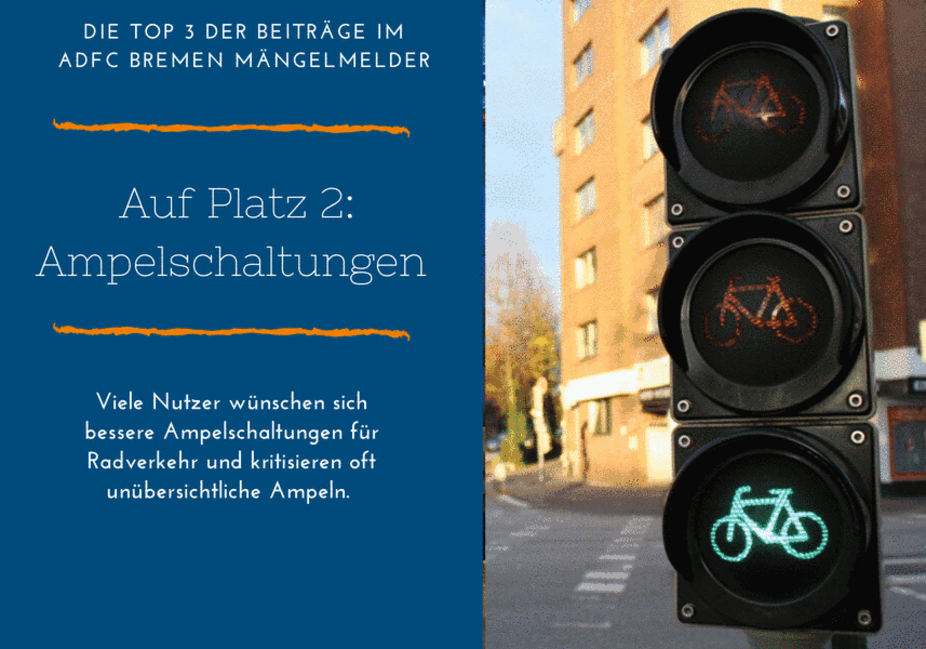 Platz 2 mit 127 Einträgen: Ampelschaltungen! Viele Nutzer wünschen sich bessere Ampelschaltungen für den Radverkehr und kritisieren oft unübersichtliche Ampeln.