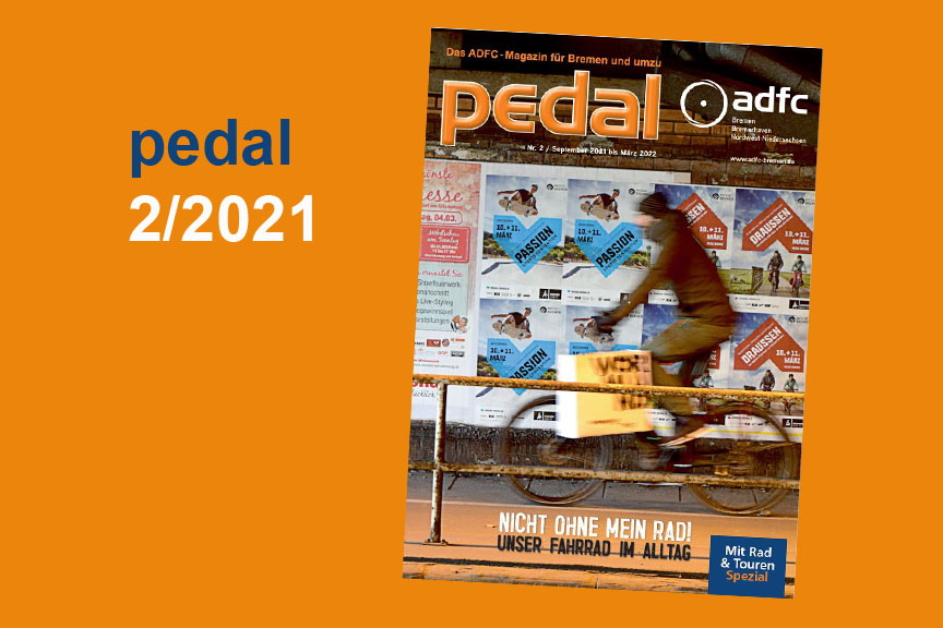 Die Ausgabe 2/2021 des ADFC Bremen-Magazins pedal erscheint am heutigen Samstag, den 04. September. ADFC-Mitglieder bekommen es direkt zusammen mit der Radwelt in den Briefkasten geliefert.