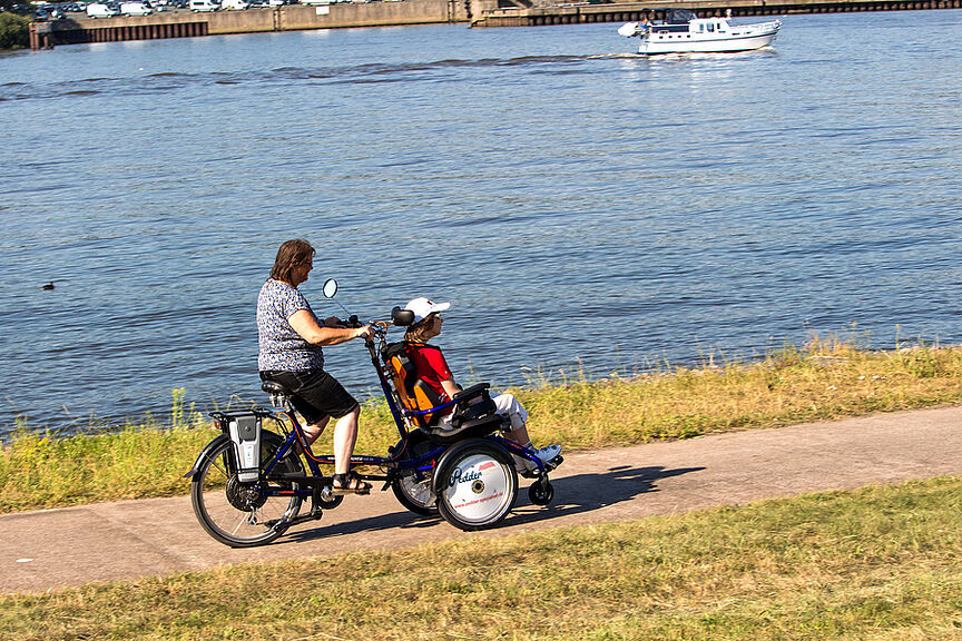 „Herzlichen Dank für die tolle Tour mit dem klasse Rad! Meine Mutter ist glücklich! Sie war seit zwei Jahren nicht mehr im Blockland, weil sie sich nicht mehr auf ein normales Rad traut mit zwei künstlichen Kniegelenken und einem neuen Hüftgelenk und 81 Jahren.“, so das Feedback zu einer Ausflugstour mit dem Pedder Paralleltandem Fun2Go.
