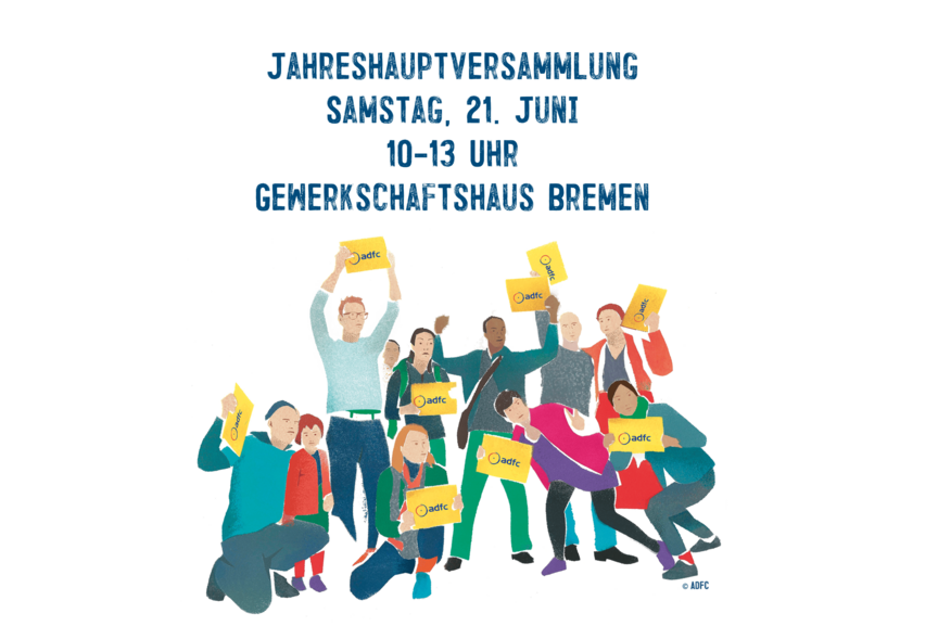 Am Samstag, den 21. Juni 2025 lädt der Vorstand des ADFC Bremen zur Mitgliederversammlung im Gewerkschaftshaus, Bahnhofsvorplatz 22 von 10 - 13 Uhr ein. Nach dem Mittagessen gibt es von 14 - 16 Uhr einen Austausch mit Staatsrat Dr. Baumheier.